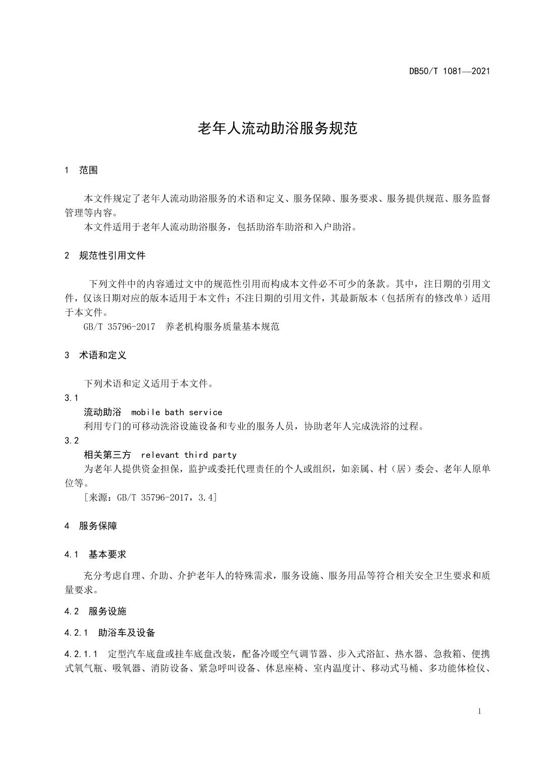 DB50/T 1081-2021 老年人流动助浴服务规范