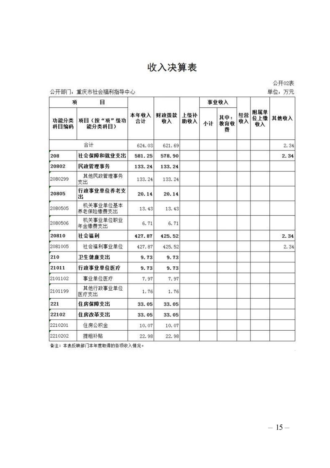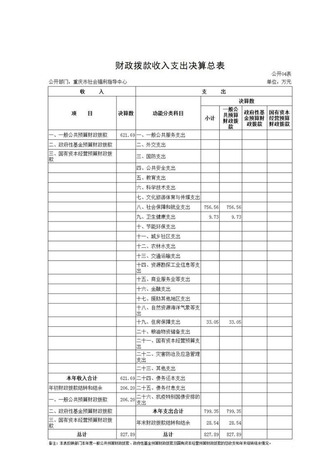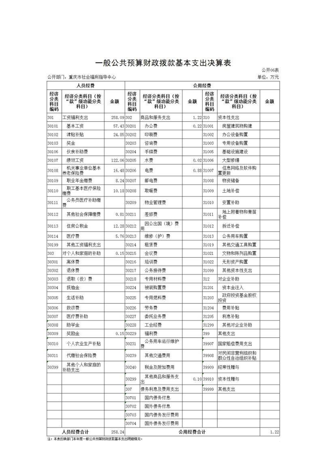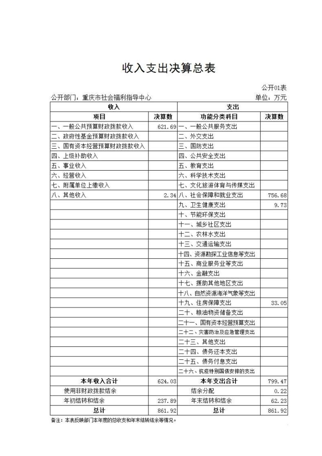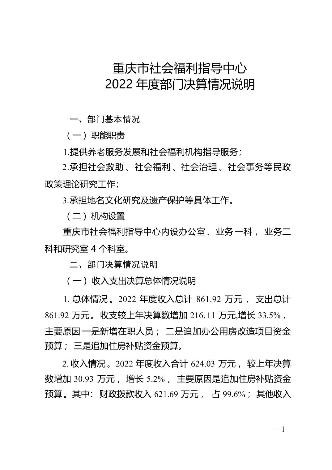 重庆市福利指导中心2022年部门决算