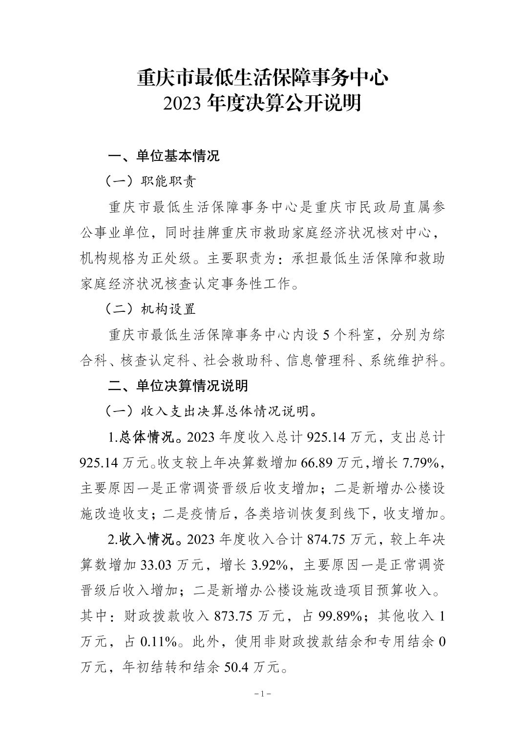 重庆市最低生活保障事务中心2023年度决算公开说明_91国产
