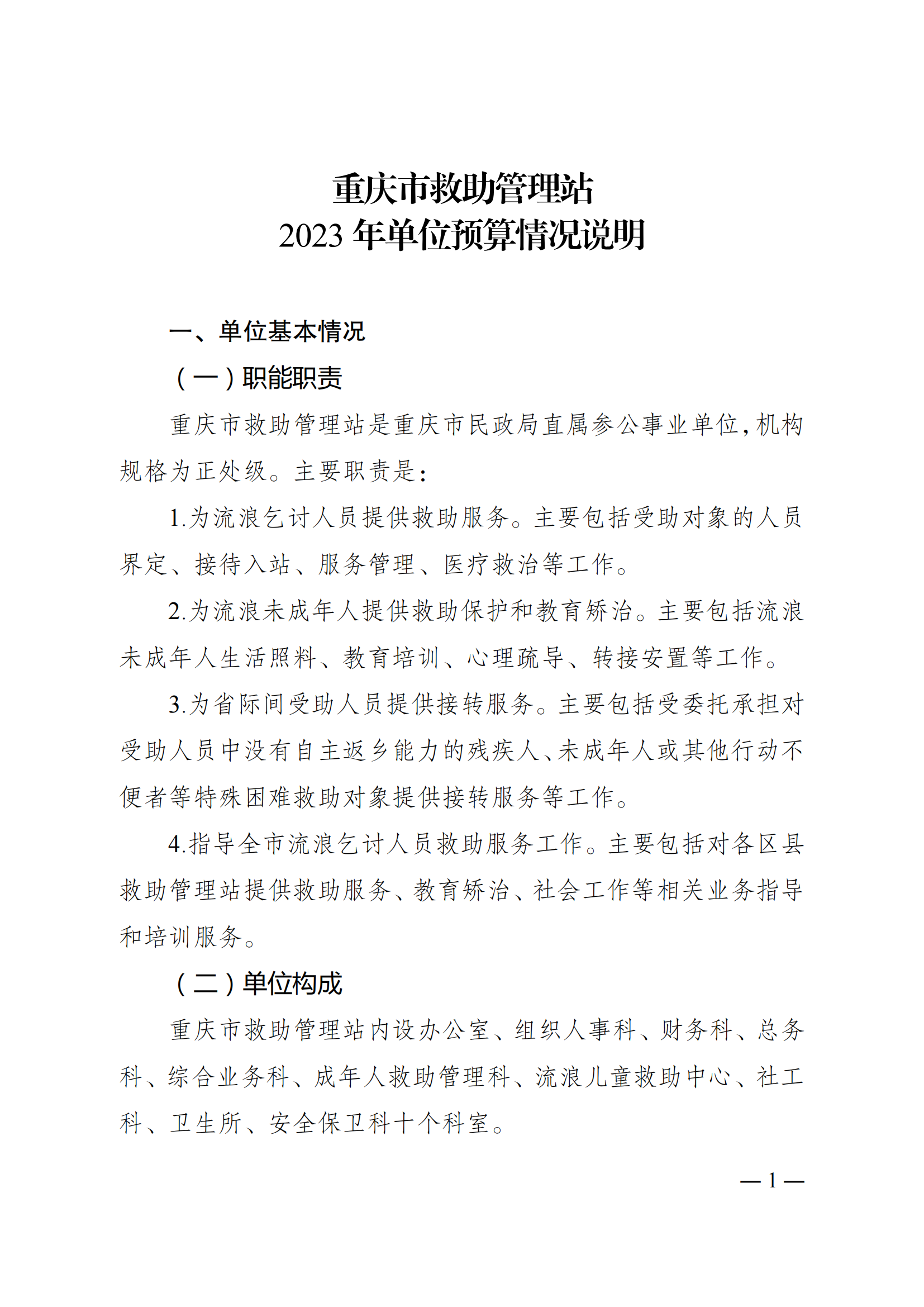 重庆市救助管理站2023年单位预算情况说明