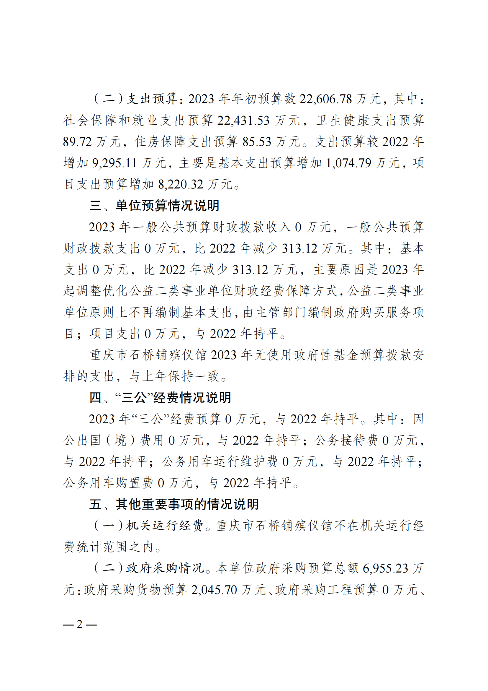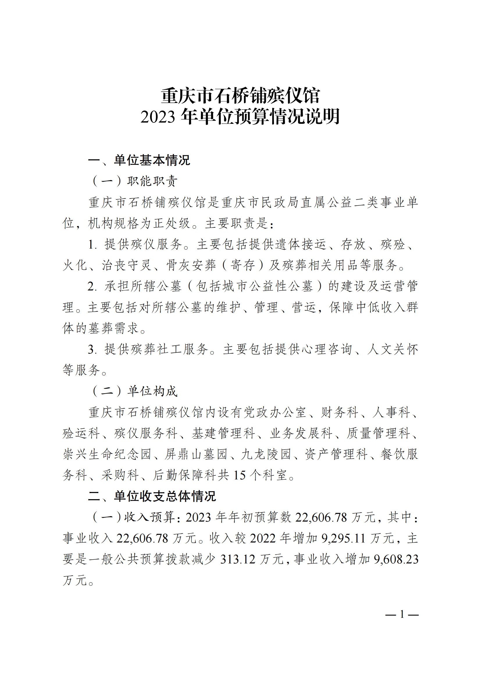 重庆市石桥铺殡仪馆2023年单位预算情况说明