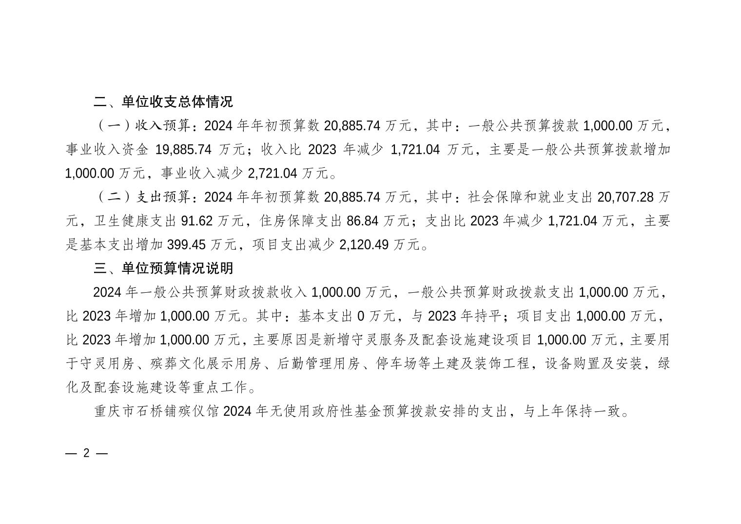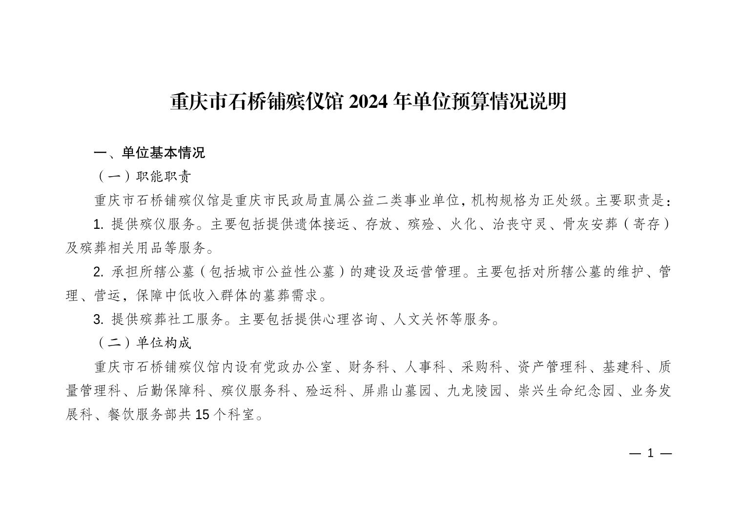 - 重庆市石桥铺殡仪馆2024年单位预算情况说明
