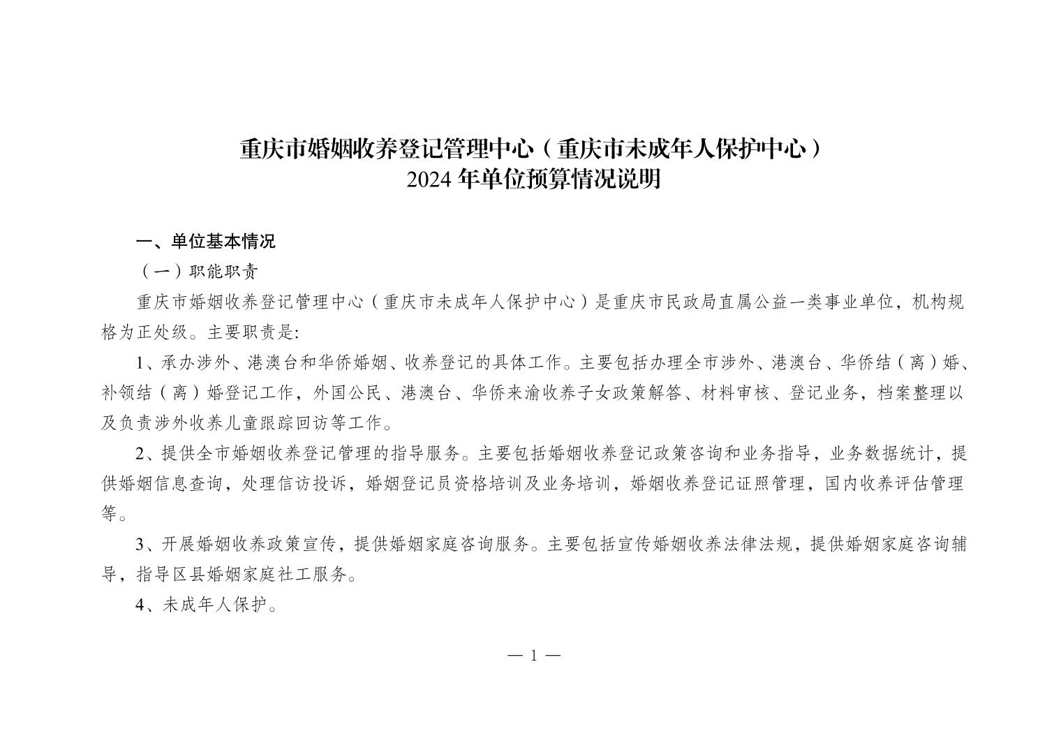 重庆市婚姻收养登记管理中心2024年单位预算情况说明_91国产